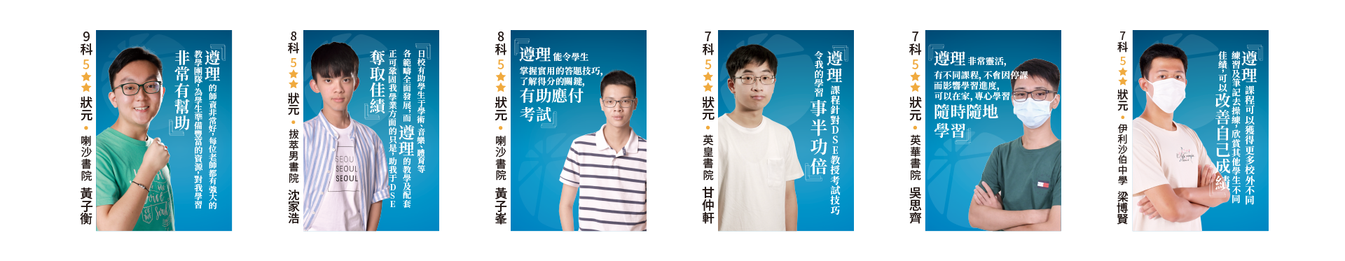 遵理HKDSE是香港规模最大的民办教育集团,每年服务数万名学生在过去8年HKDSE状元中,超过70%状元曾入读遵理。其中包括香港十多所顶级名校,包括拔萃女书院、拔萃男书院、喇沙书院、圣保罗男女中学、玛利诺修院学校、九龙华仁书院、皇仁书院等。每年升读世界名校的学生比比皆是。